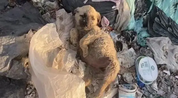 Beneath towering heaps of garbage, at a sprawling dumpsite filled with smoke, scraps, and the constant buzz of scavengers, a tiny puppy lay trembling. His eyes, wide and weary, mirrored the harshness of the world around him.