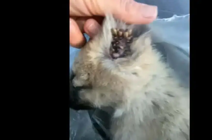 What made his suffering even worse were the clusters of fleas and ticks clinging to the tender skin around his ears.